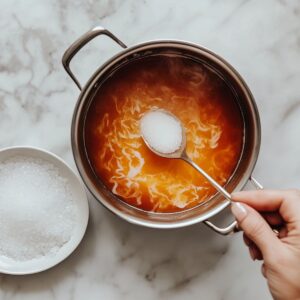 Stir in sugar and pinch of salt while tea is still hot so it dissolves completely. Add orange food coloring if desired. Let cool to room temperature.